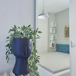 Vissa rum har också utsikt över trädgården. I denna lägenhet finns badkar och dusch.